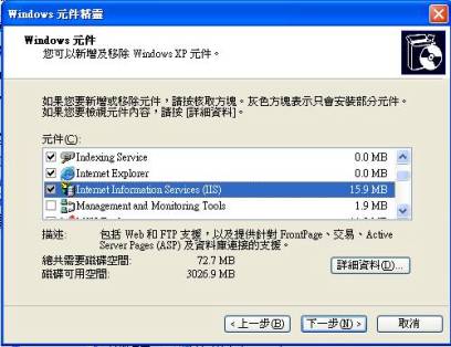 3.把IIS選項打勾=>下一步